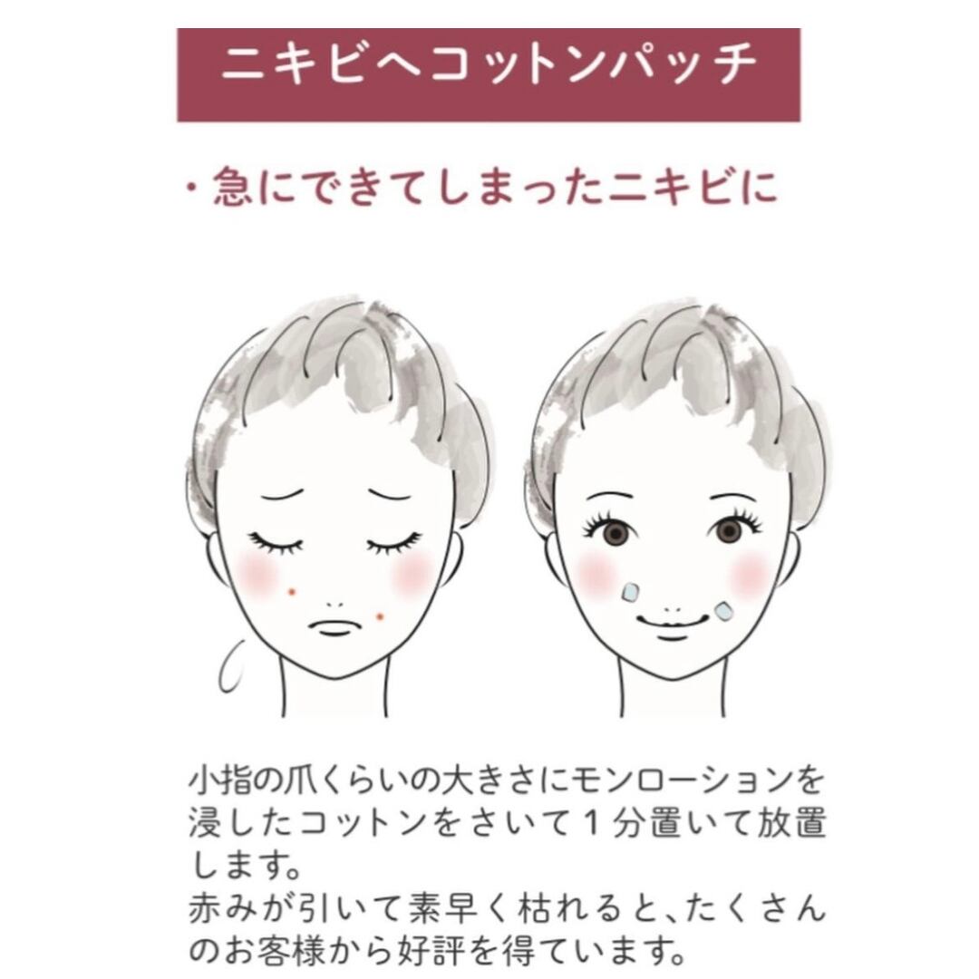 コットンに含ませて、気になる部分へ1分程度置くだけ。